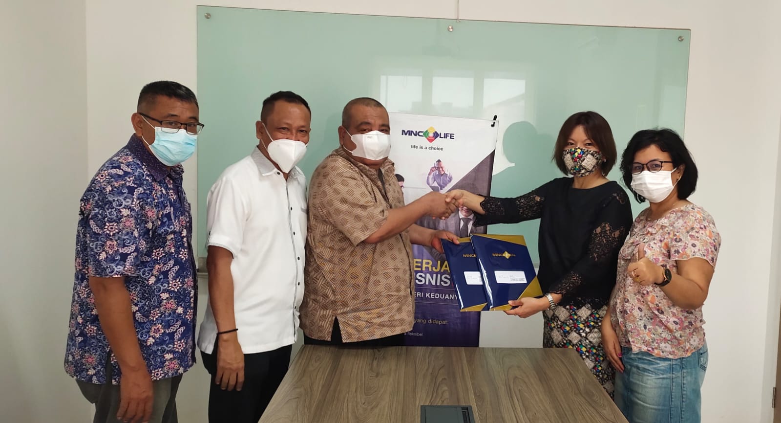 Polis asuransi diserahkan Senior Business Director PT MNC Life Insurance Medan, Mei Lin didampingi Business Manager, Rawaty Simamora kepada Ketua PWI Sumut Hermansjah SE didampingi Sekretaris PWI Sumut Edward Thahir, Wakil Ketua Bidang Pendidikan Rizal R Surya di Gedung MNC Jalan Kapten Maulana Lubis, Senin (4/10).