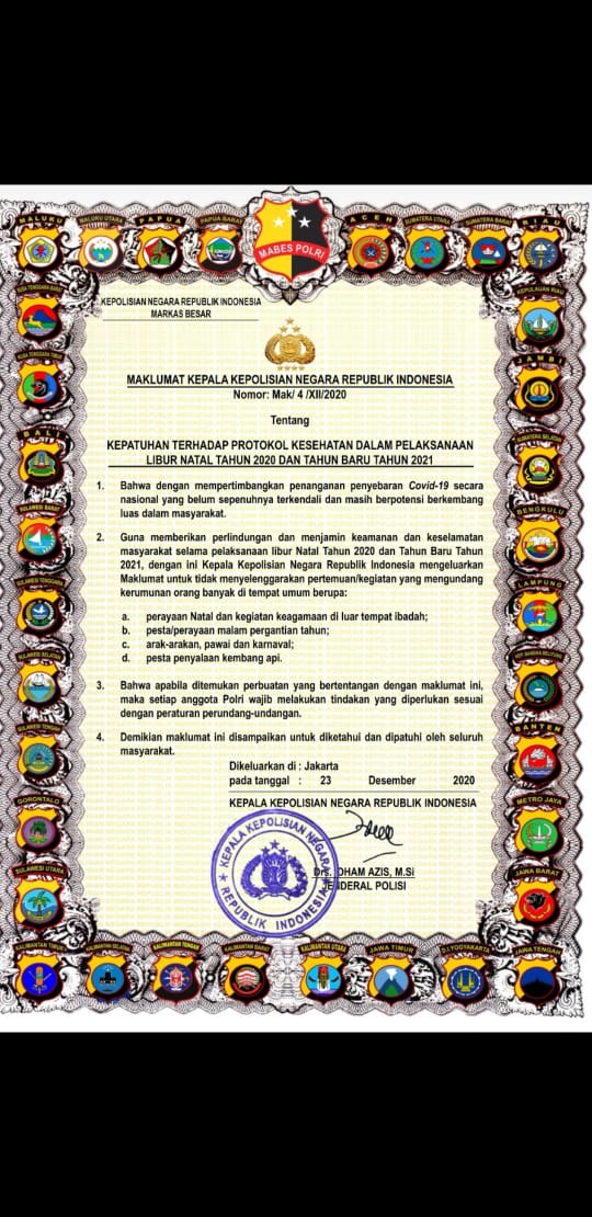 “Apabila ditemukan perbuatan yang bertentangan dengan maklumat itu, maka akan dilakukan penindakan sesuai dengan peraturan yang berlaku,” kata Boy. (TAN)