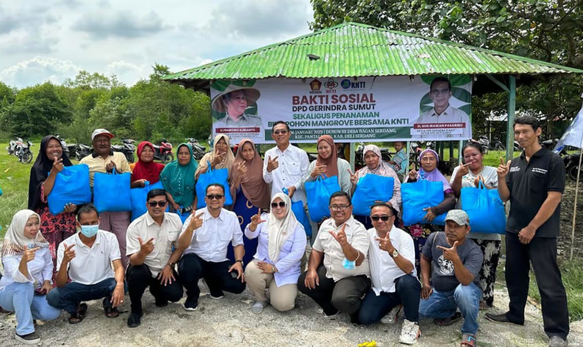 POSKOTASUMATERA.COM-PANTAILABU-Partai Gerakan Indonesia Raya (Gerindra ) Sumatera Utara melakukan bakti sosial kepada masyarakat nelayan di Desa Bagan Serdang, Kecamatan Pantai Labu, Kab.Deli Serdang, Jum’at (06/01/23).