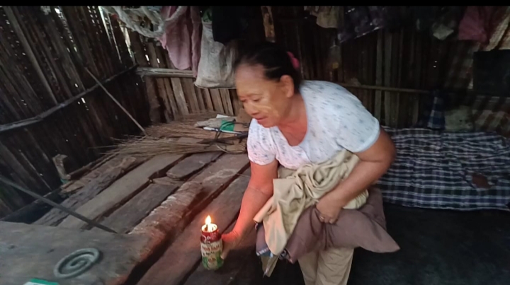 “Gubuk yang nyaris tumbang ini terpaksa di tempatinya mencapai puluhan tahun lamanya karena kondisi ekonomi yang membuatnya. Makan sehari-hari terkadang sulit, bagaimana untuk memenuhi kebutuhan yang lainnya. Bantuan dari Pemerintah Pusat yang ia terima hanya berupa beras dan uang selama tahun 2024, dua kali diterimanya. Ia tak menggunakan Gas Elpiji untuk memasak karena tidak mampu membelinya.”