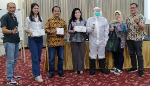 Pada rakor juga hadir pihak pendukung PT Biosel Medika Nusantara pimpinan Dr. Melani Arnaldi M Psi selaku produser APD dan PT Interskala Medika Indonesia selalu produsen Swab Antigen Anhui Deep Blue.
