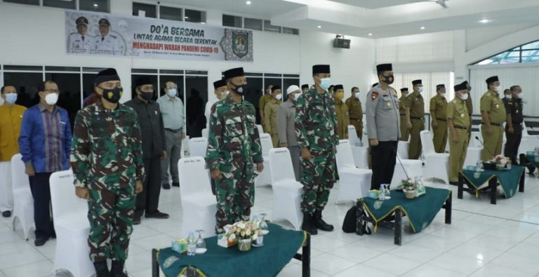MEDAN – Pemprov Sumut dan tokoh lintas agama menggelar doa bersama secara seretak di seluruh kabupaten/kota secara virtual. Pemkab Asahan dan tokoh lintas agama menggelar doa di Aula Melati Kantor Bupati Asahan, Senin (29/3/2021).
