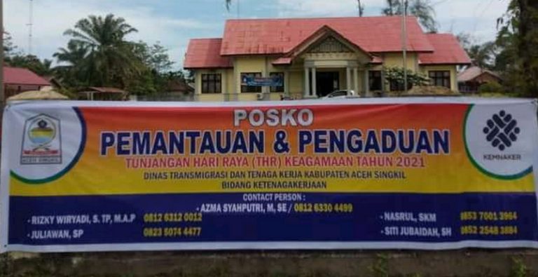 ACEH SINGKIL – Disnaker (Dinas Tenaga Kerja dan Transmigrasi) Kabupaten Aceh Singkil membuat posko bagi para karyawan yang memiliki keluhan terkait THR (tunjangan hari raya).