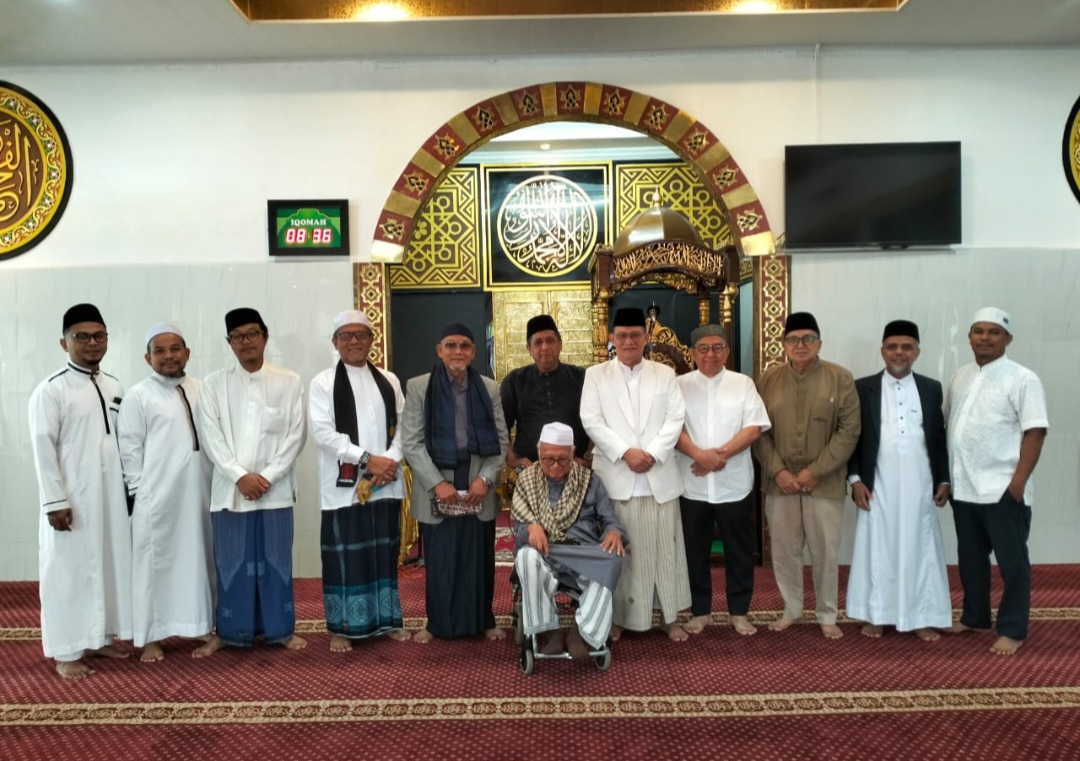 Foto : khatib Idul Adha Dr H Afifi Lubis SH MM diapit bersama Pembina BKM Asy Syafi’iyah Letjen TNI Purn A.Y. Nasution dan H Pandapotan Nasution SH serta Ketua BKM Dr H Eddy Syofian usai sholat I’d, Jumat ( 6/6 ) di Masjid Asy Syafi’iyah Jl Sinumba Raya No 1 Medan