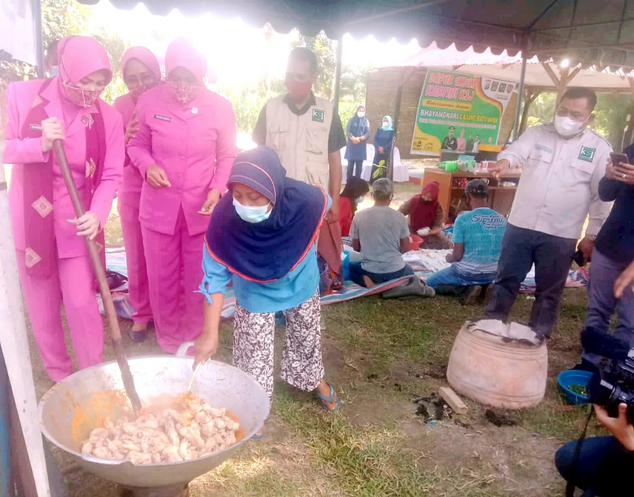 INDRAPURA – Dengan menggunakan kemeja seragam Bhayangkari, DR Henny Ikhwan M.Pd selaku Ketua Cabang Bhayangkari Polres Batu Bara meninjau sekaligus ikut memasak di dapur umum, kerjasama dengan Kartini Komunitas Sedekah Jumat (KSJ) dan Polsek Indrapura.