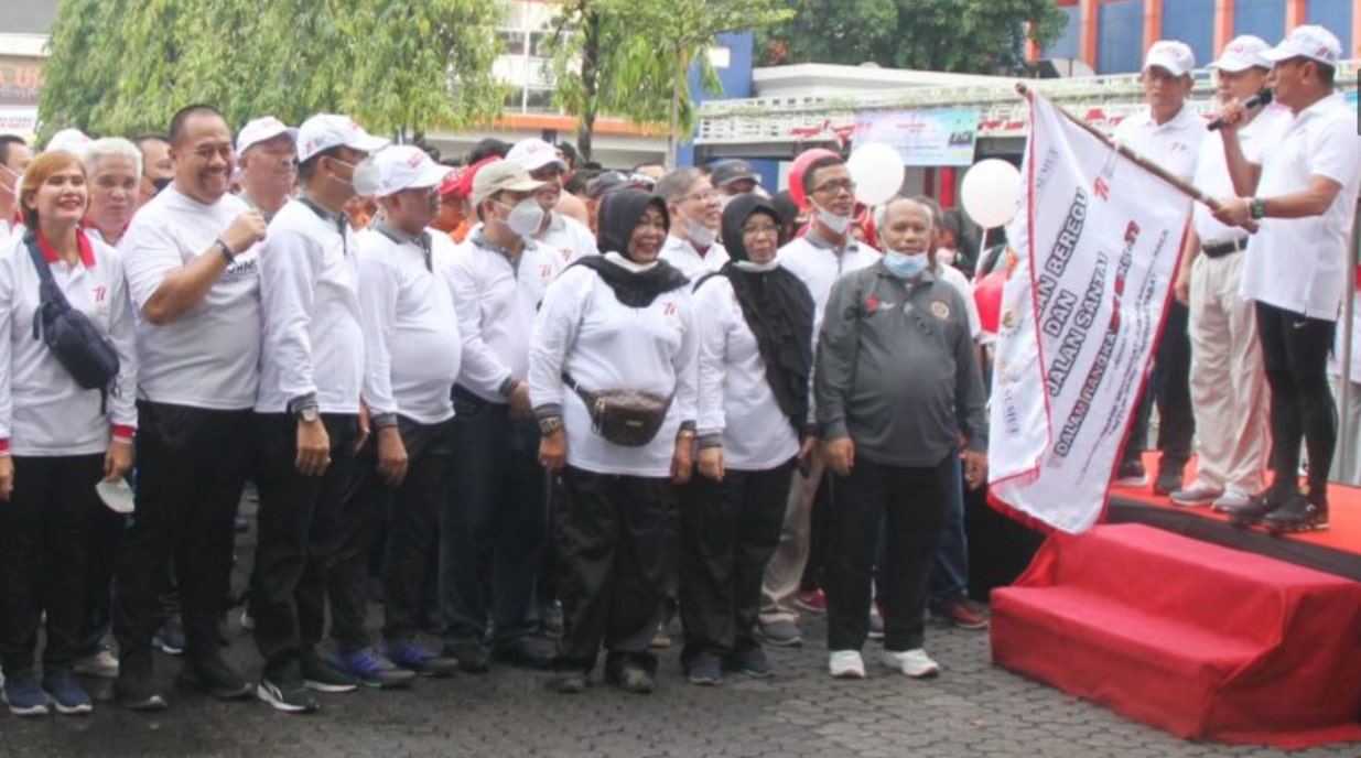 MEDAN – Gubernur Sumatera Utara (Sumut) Edy Rahmayadi melepas ribuan peserta Jalan Santai dan Gerak Jalan Beregu menyambut Hari Ulang Tahun (HUT) ke-77 Kemerdekaan Republik Indonesia (RI) di pelataran parkir PT Bank Sumut, Jalan Imam Bonjol Nomor 18 Medan, Sabtu (6/8) pagi.