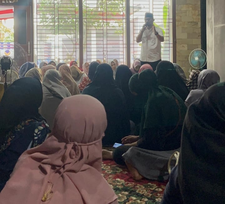 Jemaah pengajian yang dipimpin oleh Ustadz Rasyid, menggelar pertemuan pada 5 Oktober 2024, di posko pemenangan Dokter Donal-Andri bertempat di Jalan Perintis Kemerdekaan, Kelurahan Kebun Lada, Kecamatan Binjai Utara, Kota Binjai, Provinsi Sumatra Utara, Binjai Utara, (05/10/2024).