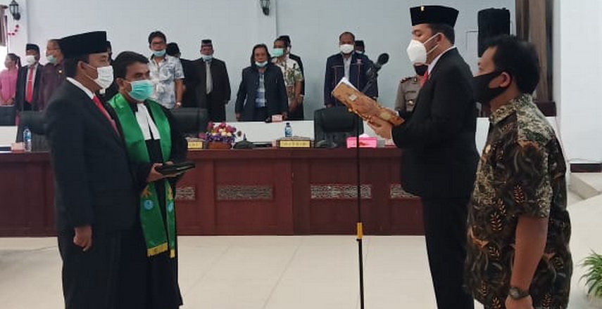 Pelantikan dan pengambilan sumpah jabatan itu berlangsung dalam sidang paripurna istimewa dengan pimpinan Ketua DPRD Samosr Saut Martua Tamba.