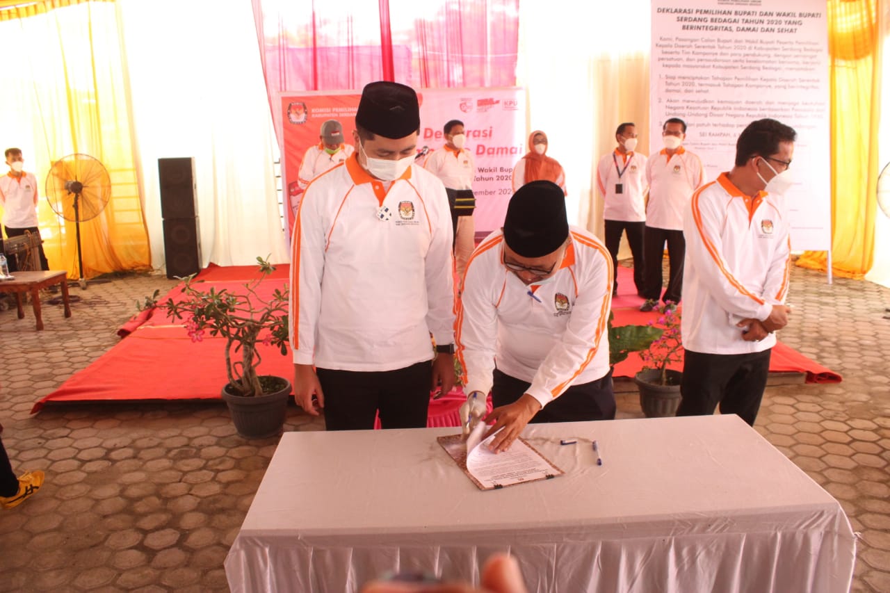Pada kegiatan tersebut, Pjs Bupati, Forkopimda, serta Paslon Bupati/Wakil Bupati menandatangani Deklarasi Pemilihan Bupati dan Wakil Bupati Serdang Bedagai Tahun 2020 yang Berintegritas, Damai dan Sehat serta ditandai dengan pelepasan balon secara simbolis.