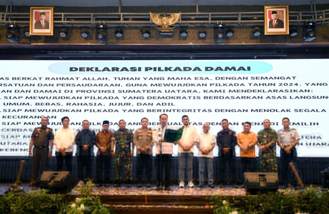 MEDAN – Penjabat (Pj) Gubernur Sumatera Utara (Sumut) berharap pelaksanaan Pemilihan Kepala Daerah (Pilkada) di Provinsi Sumut terlaksana dengan sukses, aman, damai dan lancar, sehingga mampu menjadi barometer Pilkada terbaik di Indonesia. Hal ini diungkapkannya dalam kegiatan Deklarasi Pemilihan Umum (Pemilu) Damai 2024 di Hotel Grand Mercure Maha Cipta, Medan, Sumut, Rabu (25/9/2024).