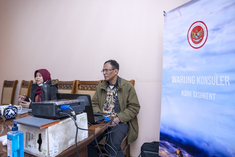 Tashkent, Uzbekistan – Dalam rangka menjangkau para WNI yang berada di luar Tashkent untuk keperluan pelayanan kekonsuleran, KBRI Tashkent selenggarakan kegiatan “Warung Konsuler” di Namangan dan Andijan (29-30/03/2021).