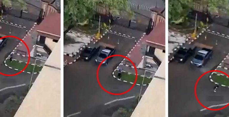 Dalam video yang beredar, pelaku yang mengenakan pakaian berwarna gelap melepas tembakan sebelum kena tembak dan jatuh.