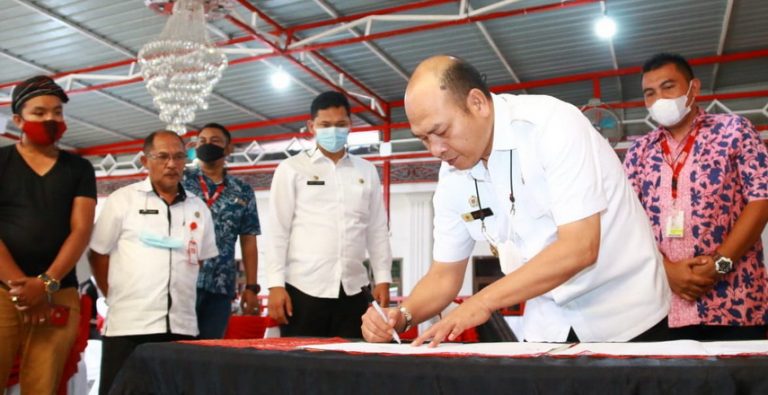 TAPANULI UTARA – Bupati Taput Drs Nikson Nababan MSi tandatangani kesepakatan bersama dengan Alfamart di Sopo Rakyat Rumah Dinas Bupati Taput, Rabu (31/3/2021). Kesepakatan itu adalah terkait pelaksanaan kemitraan UMK.