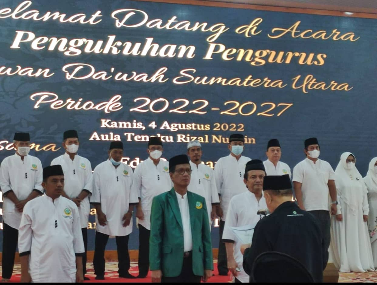 Kamis (4/8/2022) dikukuhkan oleh pengurus Dewan Da’wah Islamiyah Indonesia Pusat di Aula Tengku Rizal Nurdin rumah dinas gubsu, Jalan Sudirman, Kota Medan.