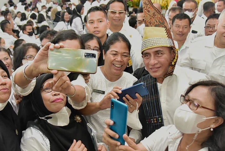 Gubernur Sumatera Utara (Sumut) Edy Rahmayadi memotivasi ribuan guru Sekolah Menengah Atas (SMA) dan Sekolah Menengah Kejujuran (SMK) se-Kota Pematangsiantar, di Aula Kampus Nommensen Jalan Sangnawaluh, Siopat Suhu, Kota Pematangsiantar, Rabu (7/9/2022). (Foto Dinas Kominfo Provinsi