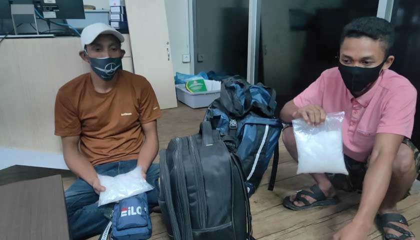 ACEH – Tergiur upah Rp50 juta jika berhasil mengantarkan narkoba, dua warga Aceh nekat menjadi kurir 1 kilogram (kg) sabu yang dimasukkan ke dalam tas.