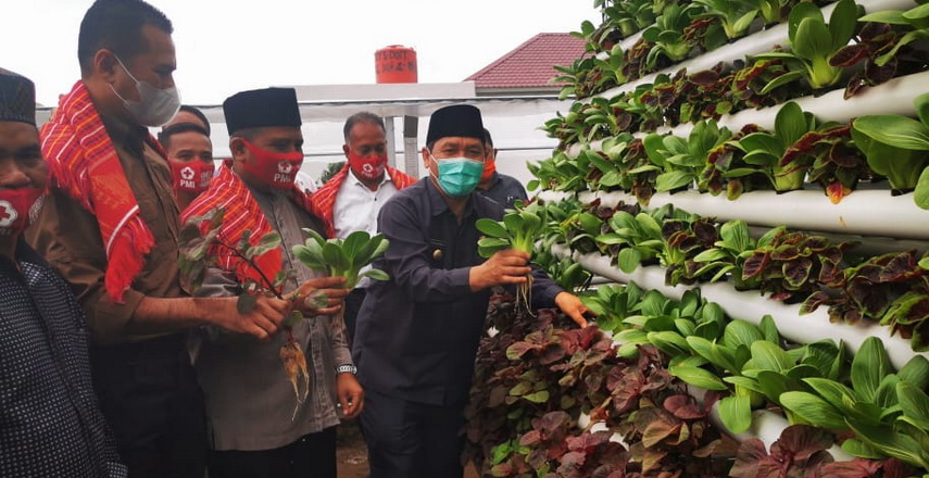 KARO – Wagub Sumut Musa Rajekshah meresmikan pilot project menuju Desa Madani dan panen perdana kebun sayur hidroponik, Selasa (6/10/2020), berlokasi Badan Kemakmuran Mesjid Baitul Makmur Desa Kutambelin Kecamatan Namanteran Kabupaten Karo.