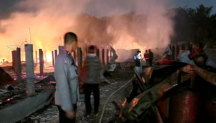 Melihat hal tersebut, saksi Ajis Gunawan memberitahukan peristiwa tersebut ke mandor Hermansyah. Selanjutnya saksi-saksi dengan bantuaan karyawan lainnya berusaha memadamkan api dengan menggunakan racun api yang sudah tersedia di lokasi.