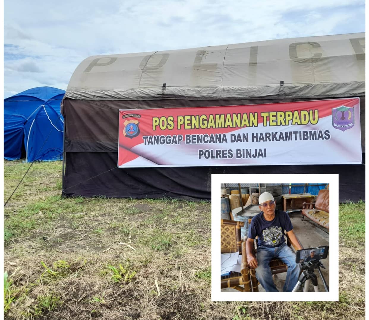 Teks. Foto : Abdin Zaini Sembiring dan Pos Terpadu didirikan Polres Binjai di lokasi penjagaan perbatasan petani mekar jaya beserta Pos BPBD Kota Binjai saat diabadikan. (/Ist)
