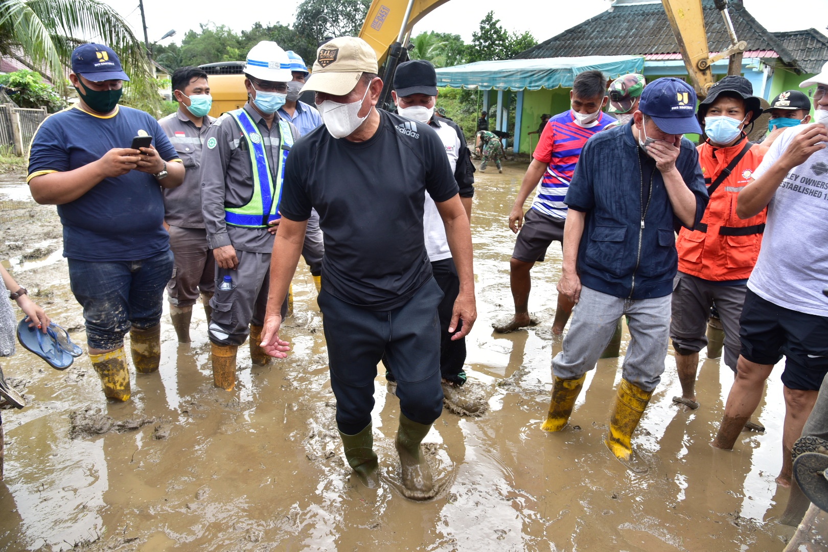 MEDAN – Gubernur Sumatera Utara (Sumut) Edy Rahmayadi didampingi Ketua Tim Penggerak (TP) Pemberdayaan Kesejahteraan Keluarga (PKK) Nawal Edy Rahmayadi melakukan peninjauan kembali ke pemukiman warga yang terdampak banjir, di Perumahan De Flamboyan, Desa Tanjung Selamat, Deli Serdang pada Sabtu (5/12/2020. Hal ini untuk memastikan proses pembenahan dan evakuasi barang-barang milik warga pasca Banjir berjalan lancar.