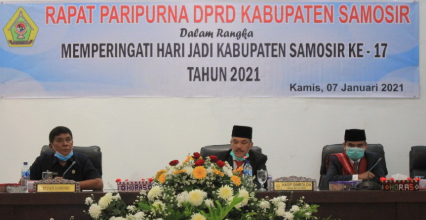 SAMOSIR – Wakil Bupati Samosir menyampaikan sambutan pada paripurna DPRD setempat, Kamis (7/1/2021). Paripurna adalah terkait HUT ke-17 Kabupaten Samosir.