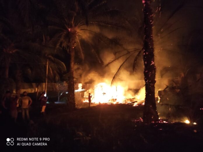 Manto (40) buruh, warga Lingkungan I Kampung Lalang Kelurahan Pekan Besitang Kecamatan Besitang Kabuparen Langkat dengan kerugian materi Rp 60 jutaan, rincian rumah hangus terbakar beserta isinya. Beber AKP A Harahap SH.