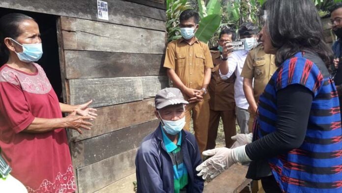 Satika Simamora yang turun, Senin (8/2) 2021, didampingi Camat Adiankoting, Kades Tauronito Hutabarat yang miris meminta agar rumahnya dimasukkan daftar penerima rumah bedah.