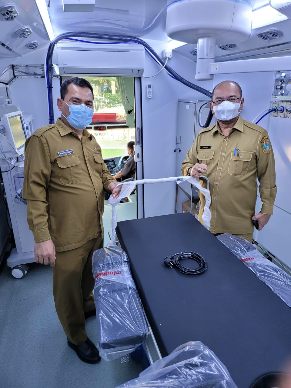 Launching Bus Medis kata Alwi, diperuntukan bagi pasien yang akan dioperasi maupun pasien covid 19 nantinya di Kabupaten/Kota dengan fasilitas berupa alat medis dan ruang operasi serta perawat juga dokter.