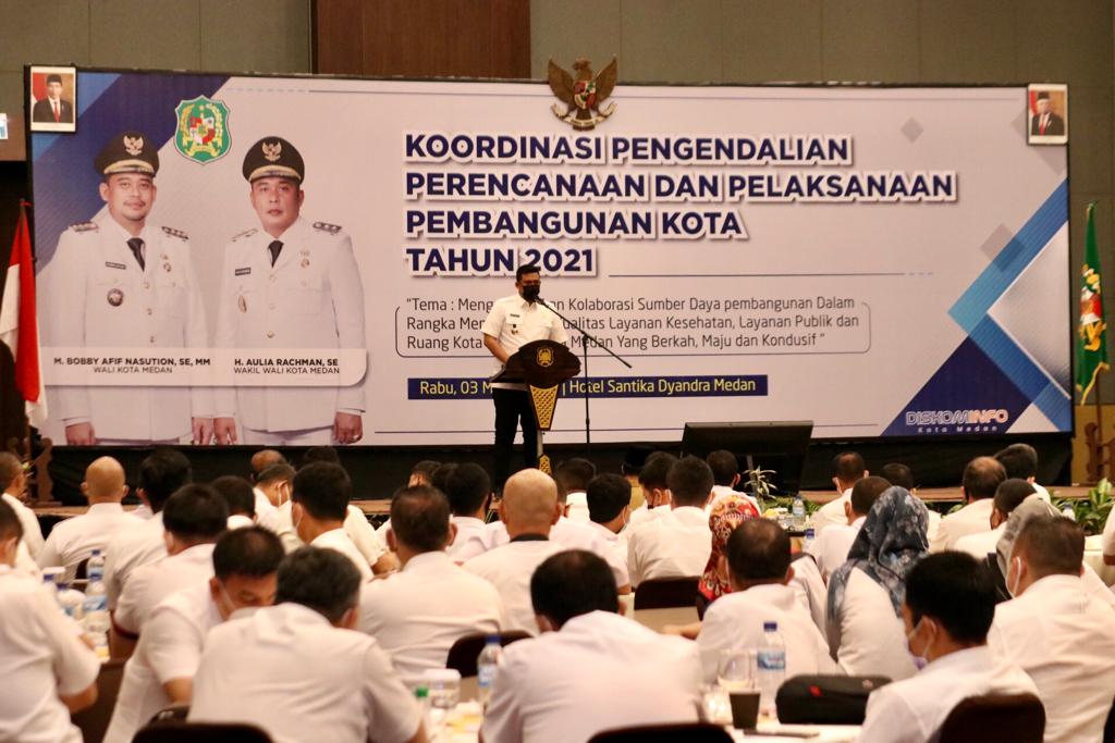 Pada acara yang dihadiri Kepala Perwakilan BPKP Sumatera Utara Yono Andi Atmoko, Wakil Wali Kota Medan, H. Aulia Rachman, S.E., Sekda Ir. Wiriya Alrahman, M.M, para Asisten Setdako, Staf Ahli Wali Kota, pimpinan OPD, Kaban, Direksi Perusahaan Daerah, Kabag, Camat, dan Lurah se-Kota Medan dengan penerapan protokol kesehatan yang ketat itu, Bobby juga menekankan, penanganan Covid-19 harus menjadi fokus utama dan perhatian. Diperlukan kolaborasi antarOPD dalam penanganan pandemi ini.