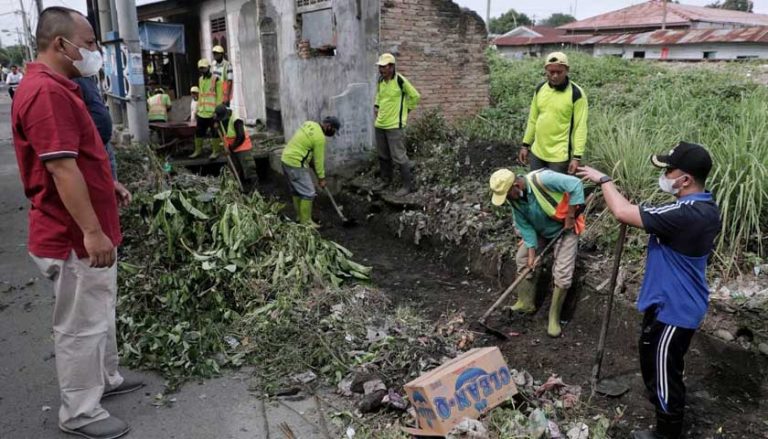 .MEDAN – Jajaran Kecamatan Medan Timur termasuk Petugas Penanganan Prasarana dan Sarana Umum (P3SU) melakukan gotong royong massal di jalan Ampera, Kelurahan Gelugur Darat I, Kecamatan Medan Timur, Minggu (4/4). Gotong royong ini salah satu upaya menjaga kebersihan lingkungan, selain itu juga bertujuan untuk mewujudkan program Wali Kota Medan Muhammad Bobby Afif Nasution, SE, MM di bidang Infrastruktur dan penanganan banjir.