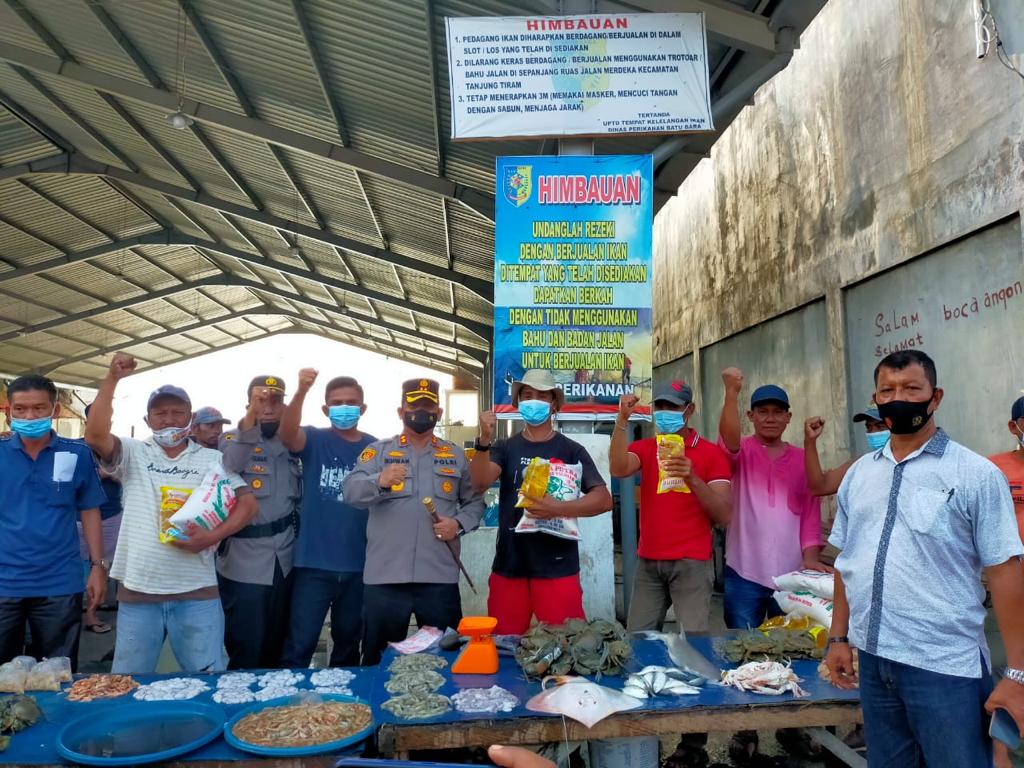 BATUBARA-Ingat masa kecilnya Kapolres Batubara AKBP Ikhwan Lubis SH MH disela sela kesibukannya mengajak Komunitas Sedekah Jumat (KSJ) mengunjungi dan memberi bantuan kepada seluruh pedagang Pajak Ikan TPI  Pelabuhan Tanjung Tiram  Kota Tanjung Tiram Kab. Batubara, Kamis (8/7/2021).