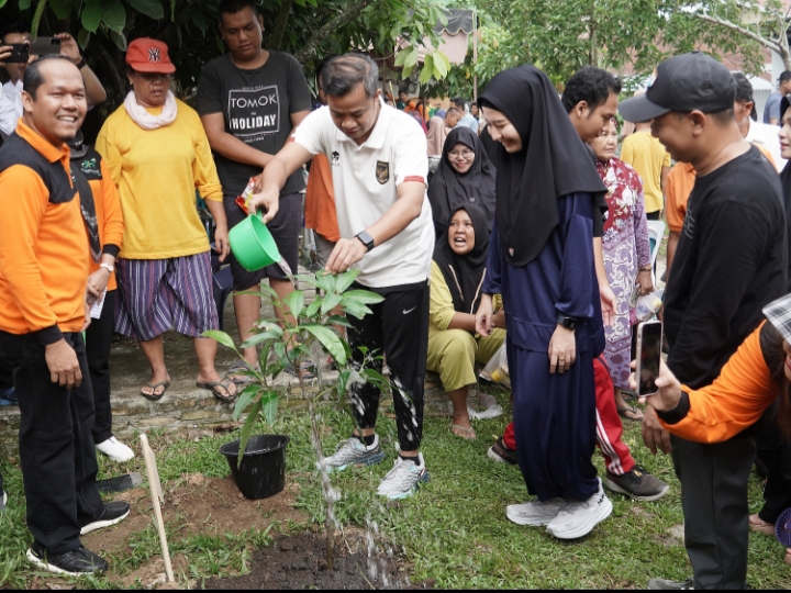 Tebing Tinggi – Hadiri Hari Lingkungan Hidup (HLH) Sedunia tahun 2024, Penjabat Wali Kota Tebing Tinggi, Moettaqien Hasrimi memimpin kegiatan gotong royong dan penanaman pohon bersama, Sabtu (6/7/2024), di Jalan Pulau Sumatera Kota Tebing Tinggi.