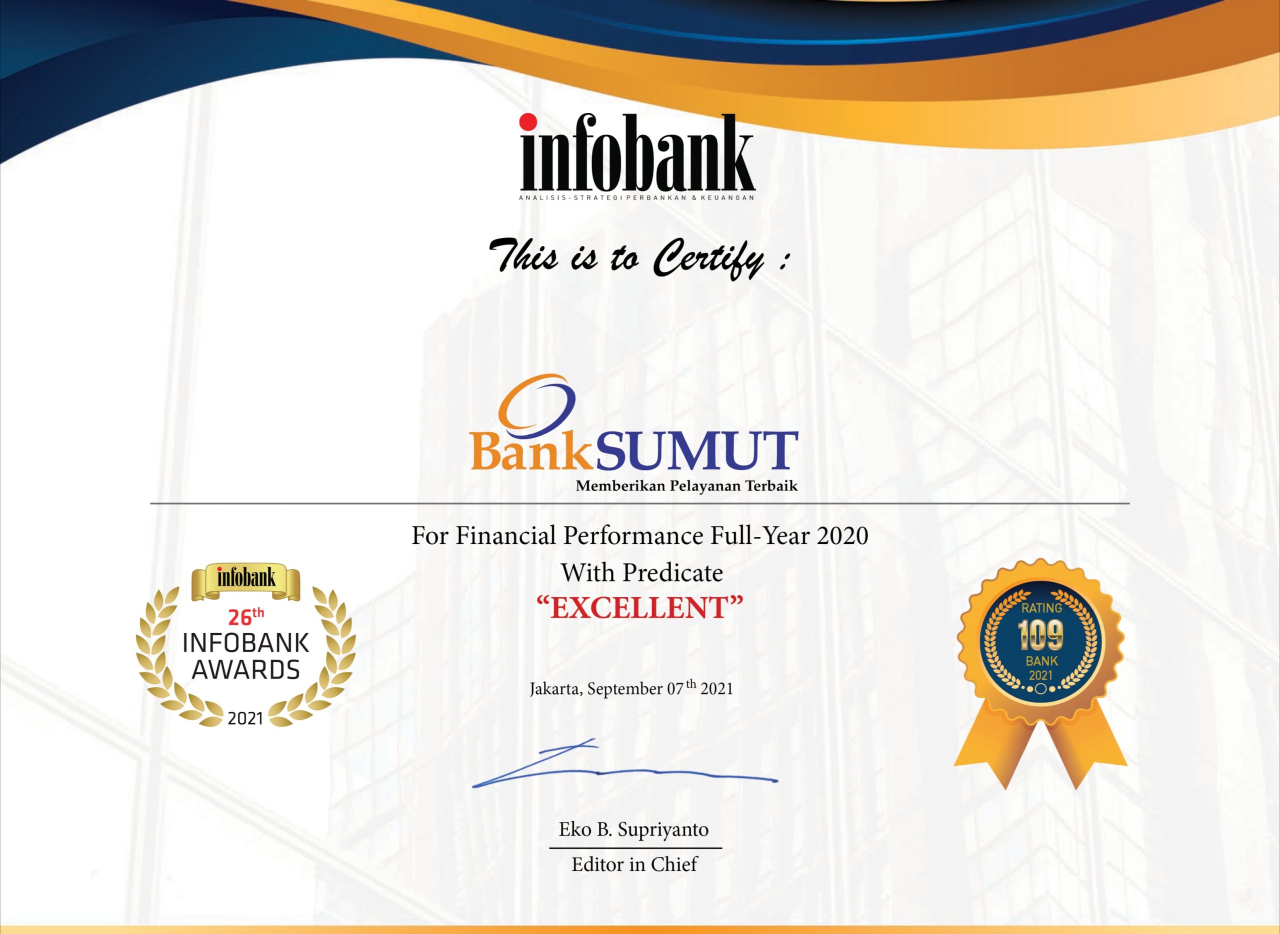 Rapor keuangan ini juga membuat Bank Sumut berhak menerima predikat “Sangat Bagus” untuk yang kelima kalinya pada 26th Infobank Awards 2021.