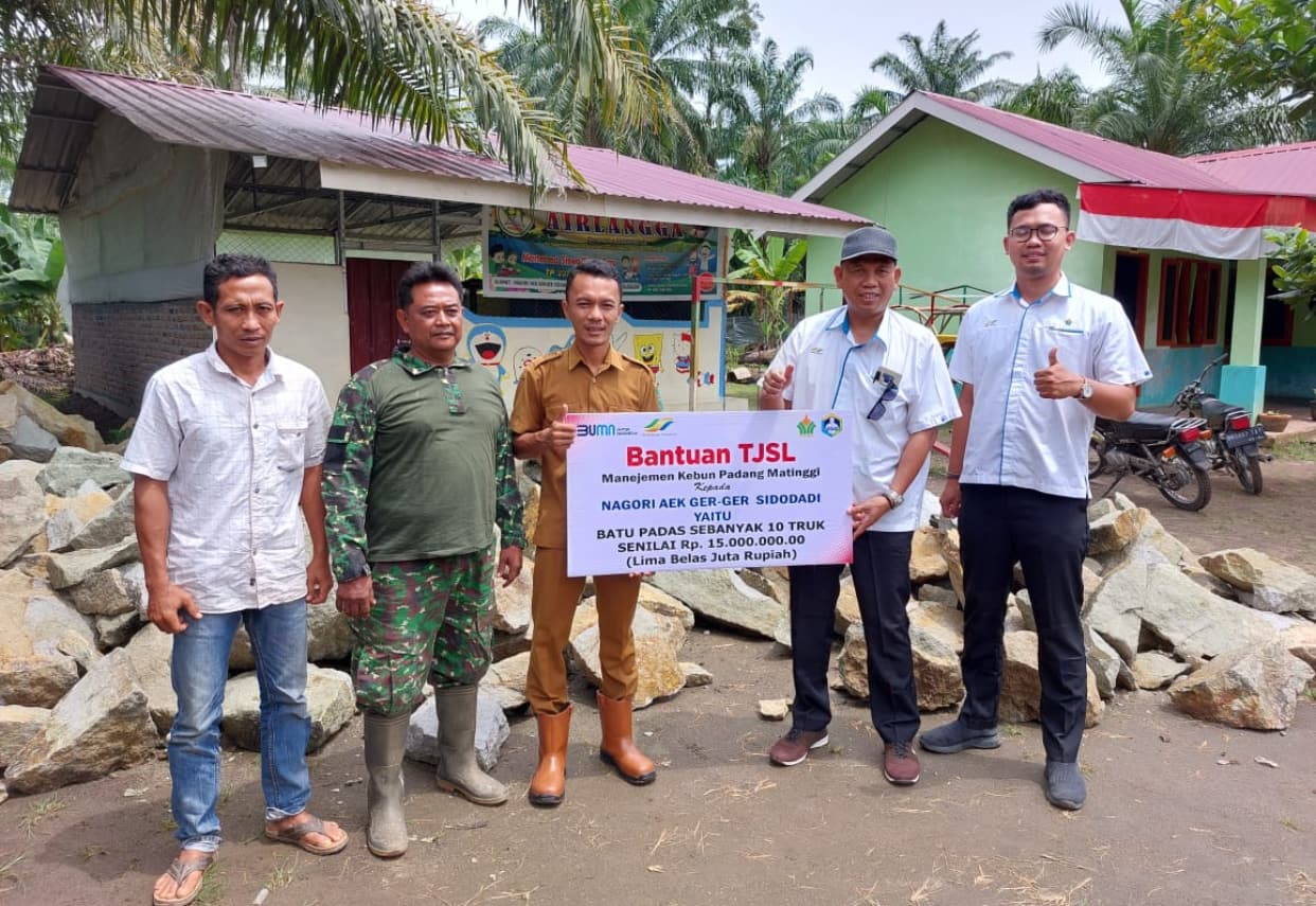 Pemberian bantuan TJSL ini langsung diserahkan oleh Manajer Unit Kebun Padang Matinggi Julfikar Damanik,SP dan diterima Pangulu Nagori Aek Gerger Sidodadi Erwansyah Putra di Kantornya.