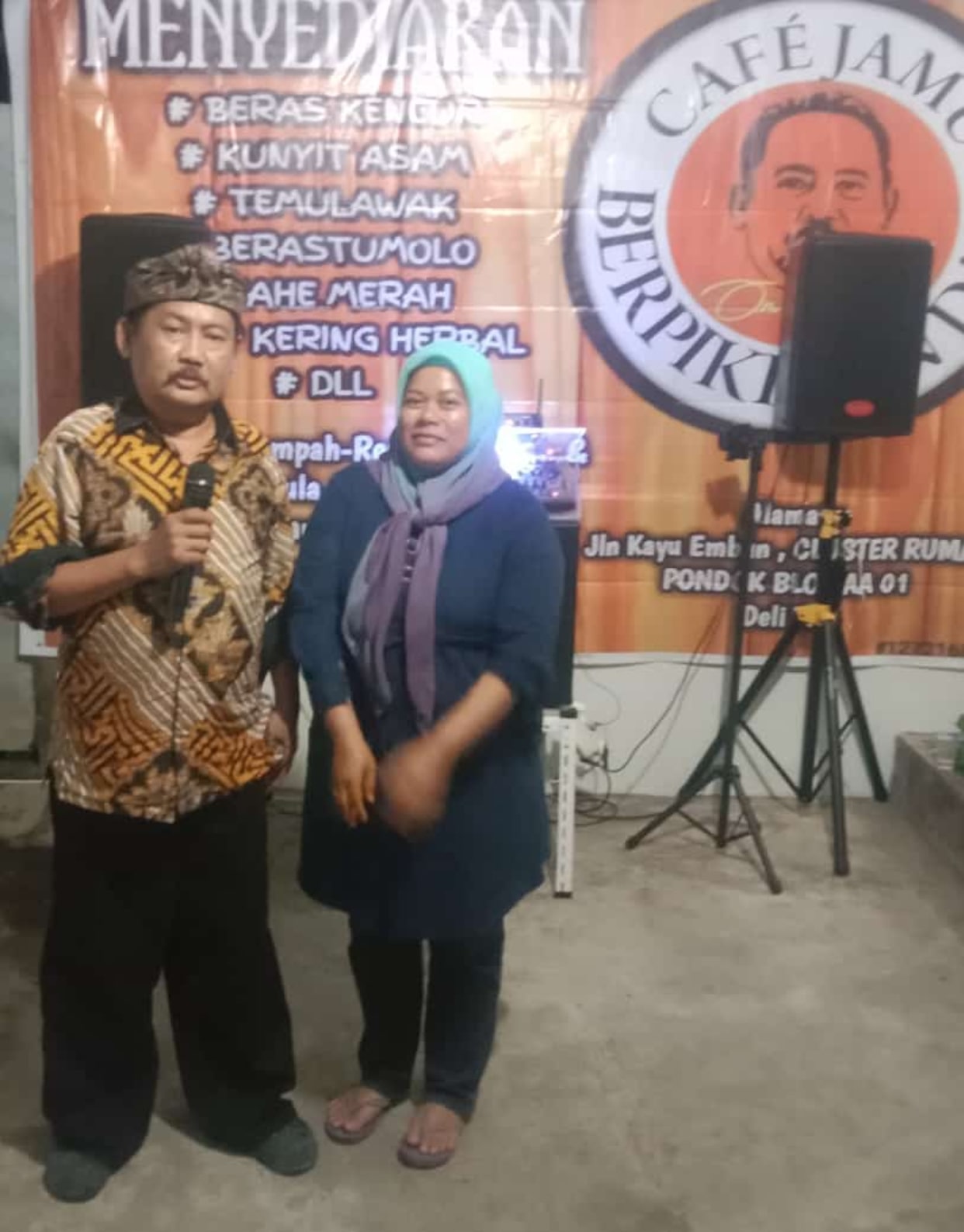 ” Usaha ini kita mulai sebagai usaha berbagi tips sehat buat Sahabat yang gemar jamu tradisional dikemas secara modern” Ujar Baharuddin Saputra yang langsung meracik dagangannya didampingi sang istri Evi Khairani saat lounching cafe jamunya, Sabtu malam ( 7/10/2023) di Gerbang Perumahan Cluster Rumah Pondok ( CRP jln Kayu Embun simpang jln Pantai Bunga Deli tua.