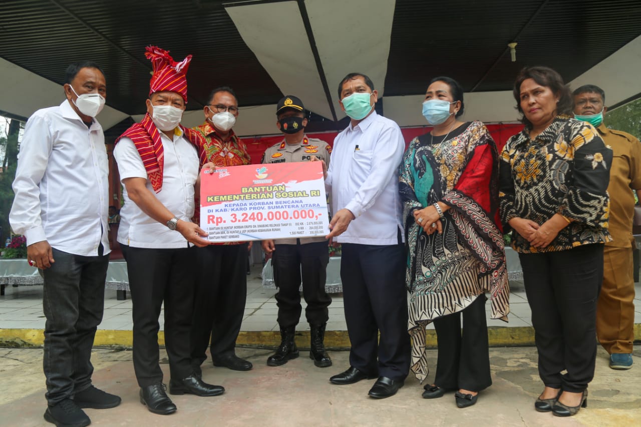 “Terima kasih karena Kemensos telah berkomitmen merelisasikan bantuan yang dibutuhkan para korban Erupsi Sinabung (isi huntap) dan kebakaran Brastagi (stimulan UEP) dengan cepat, termasuk paket sembako yang diterima warga. Ini tanda mata, bentuk kepedulian Kemensos kepada warga Tanah Karo,” ungkap Bupati.