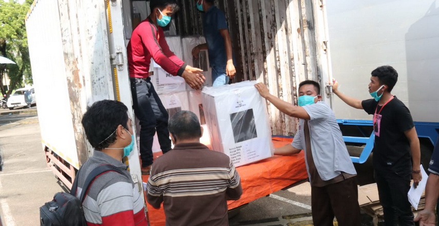MEDAN – Menjelang Pemilihan Walikota dan Wakil Walikota Medan Tahun 2020 yang tinggal dua hari lagi, KPU Kota Medan mulai mendistribusikan logistik Pilkada berupa kotak suara dan alat kelengkapan Tempat Pemungutan Suara (TPS).