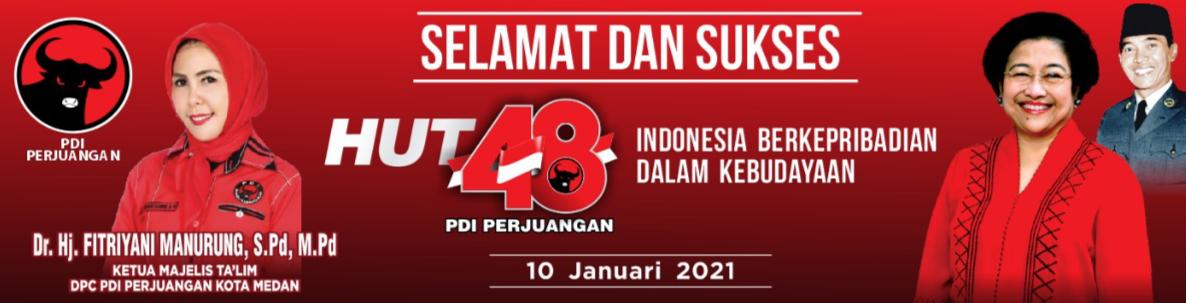 MEDAN-Ketua Majelis Taklim DPC PDI Perjuangan Kota Medan Dr. Hj. Fitriani Manurung M.Pd sampaikan selamat atas hari jadi ke 48 PDI Perjuangan yang jatuh pada Minngu (10/1/2021).