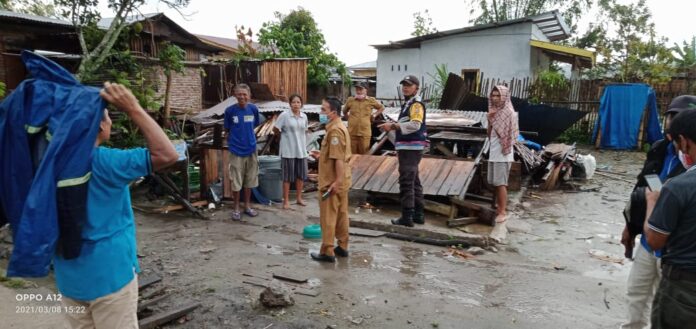 Dari data sementara yang dikumpulkan terdapat Sepuluh (10) rumah mengalami rusak berat yakni rubuh dan atapnya sengnya dihantam angin kencang.