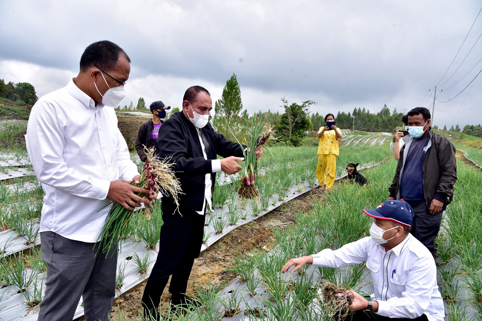 HUMBANG HASUNDUTAN – Gubernur Sumatera Utara (Sumut) Edy Rahmayadi melakukan panen perdana komoditi bawang merah dan kentang di lokasi Food Estate, Desa Ria-ria, Kecamatan Pollung, Humbang Hasundutan (Humbahas), Rabu (3/3/2021). Panen tersebut diharapkan menjadi motivasi keberhasilan program Food Estate untuk memenuhi kebutuhan pangan dan peningkatan kesejahteraan masyarakat lokal.