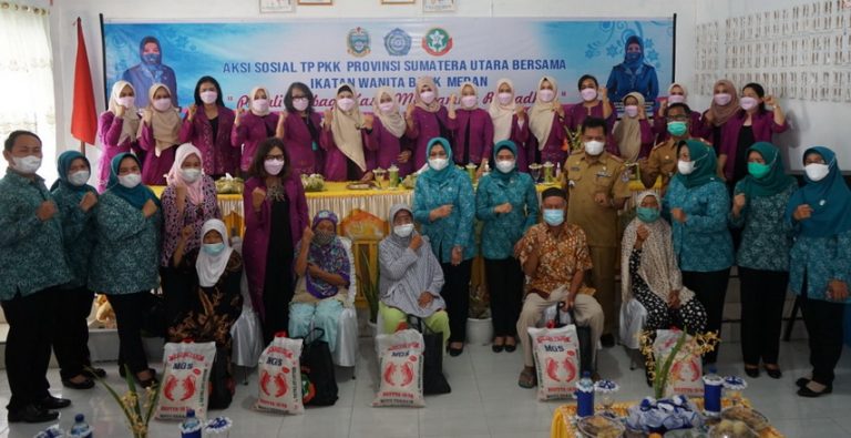 DELI SERDANG – Tim PKK Provinsi Sumut (Sumatera Utara) bersama Ikatan Wanita Bank IWABA Sumut menggelar aksi sosial berupa pemberian bantuan sembako kepada masyarakat miskin di Desa Tandem Hilir 2 Kecamatan Hamparan Perak, Deli Serdang, Senin (5/4/2021).