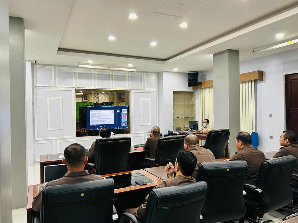 MEDAN-Kejaksaan Tinggi Sumatera Utara kembali menghentikan penuntutan perkara tindak pidana penganiayaan dan pengancaman dari Kejari Gunungsitoli dan Kejari Labuhanbatu setelah sebelumnya Kajati Sumut Idianto, SH,MH, diwakili Wakajati Joko Purwanto, SH, MH, Aspidum Luhur Istighfar,SH,MH, Kabag TU dan para Kasi di ruang vicon Lantai 2 Kantor Kejati Sumut, Kamis (6/4/2023) kepada Jaksa Agung Muda Bidang Tindak Pidana Umum (JAM Pidum) Kejagung RI Dr. Fadil Zumhana RI.