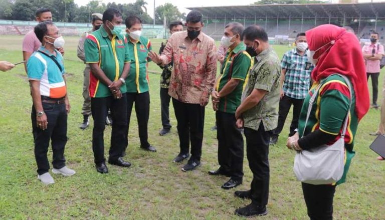 MEDAN – Usai meninjau vaksinasi Covid-19 bagi atlet dan pelatih, Wali Kota Medan, Bobby Nasution kemudian meninjau kondisi fasilitas Stadion Teladan Medan, Kamis (8/7).