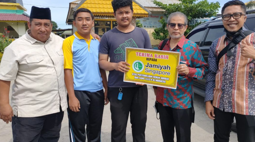 Dalam penyerahan tersebut, Jamiyah Singapore juga memberikan hewan kurban kepada masjid-masjid Binaan BKPRMI Peduli,