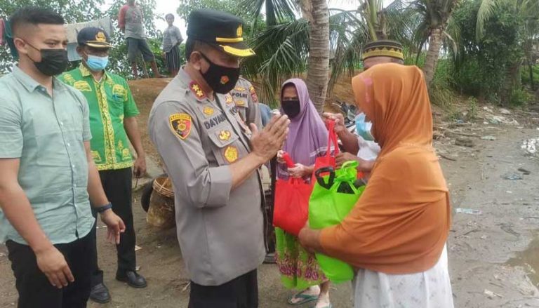 MEDAN – Untuk mengurangi beban warga selama masa pandemi Covid-19, Kapolres Pelabuhan Belawan. AKBP Dr H MR Dayan SH MH memberikan sembako kepada warga, Minggu (8/7) sekira pukul 10.00 wib.