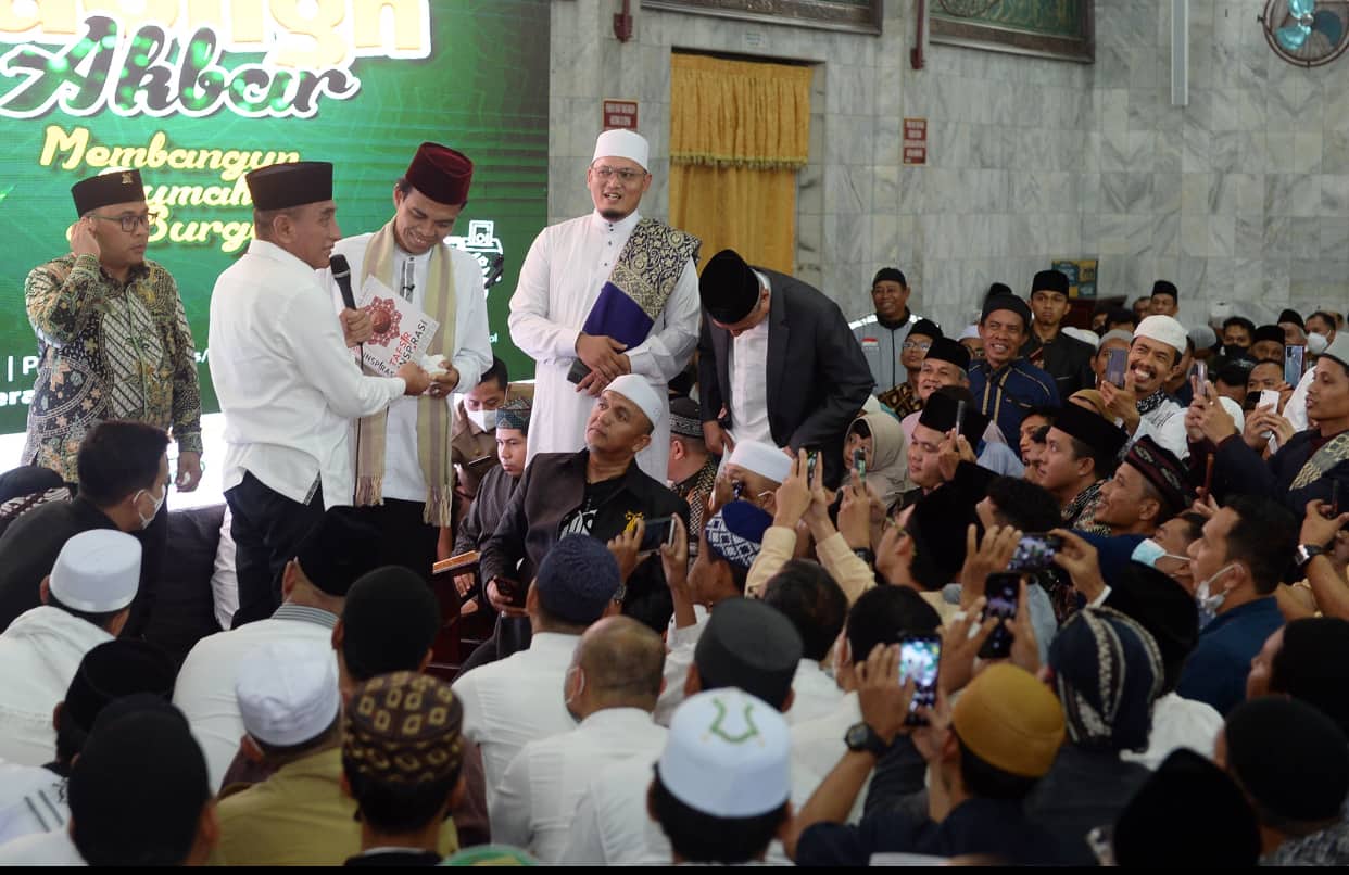 Hal itu disampaikan Gubernur Edy Rahmayadi saat acara Tabligh Akbar dengan tema ‘Membangun Rumah di Surga’ yang dihadiri Ustaz Abdul Somad (UAS) serta para tuan guru di Sumut. Sekaligus juga menggalang dana bantuan untuk pembangunan Masjid Agung Sumut.
