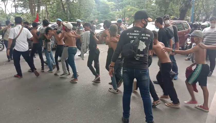 MEDAN – Menjelang datangnya massa PMII yang akan menggelar aksi demo damai di Gedung DPRD Sumut, puluhan petugas kepolisian unit Intelkam Polrestabes Medan yang berpakaian preman, berhasil membekuk puluhan remaja yang melintas di depan Palladium Plaza Jalan Kapten Maulana Lubis Medan, Jumat (9/10/2020) sekira pukul 14.00 wib