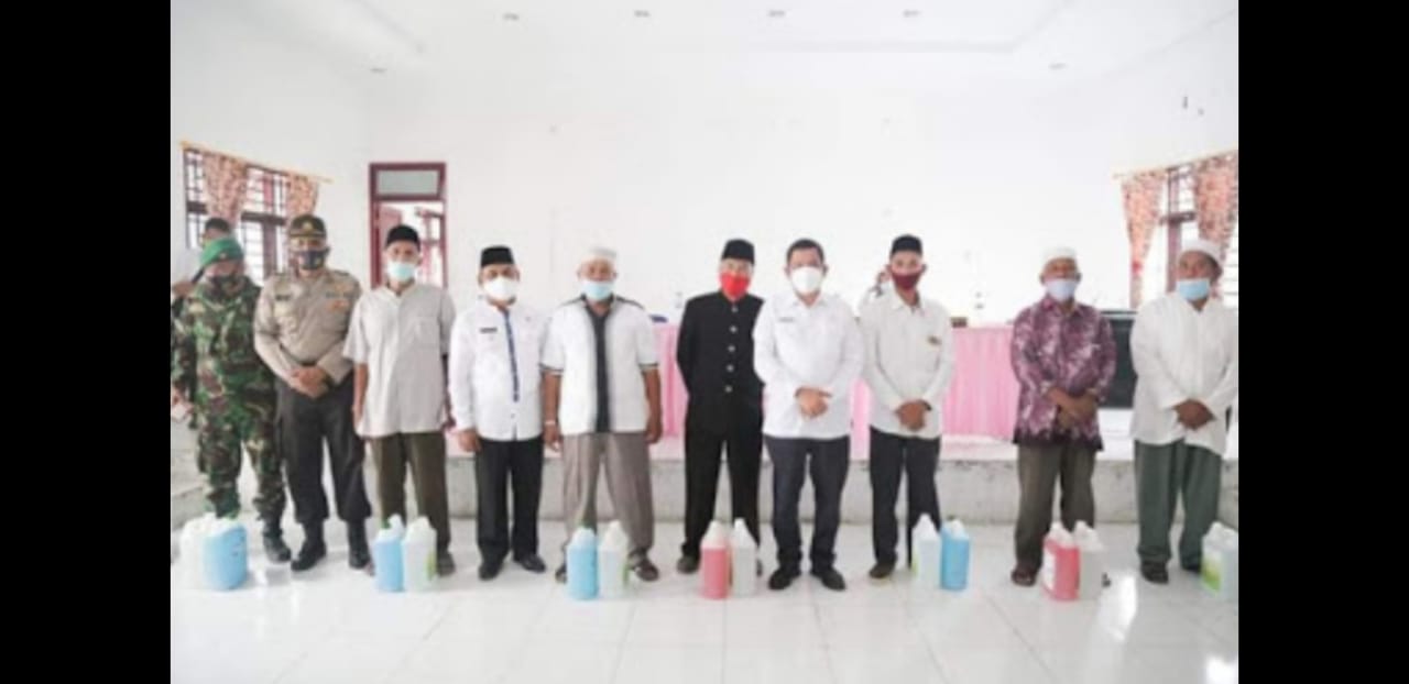 Dalam agenda kunjungan kerja kali ini, Pjs Bupati Labuhanbatu menyerahkan desinfektan dan handshoap kepada puluhan Imam Masjid dan Najir Masjid maupun Musholla se-Kecamatan Panai tengah.