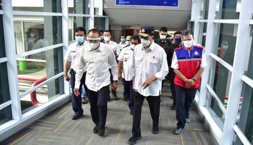 MEDAN – Menteri Perhubungan (Menhub) Budi Karya Sumadi bersama Gubernur Sumatera Utara (Sumut) Edy Rahmayadi meninjau Stasiun Kereta Api Medan dan Stasiun Lubuk Pakam Deli Serdang, terkait Program Padat Karya yang diselenggarakan Kementerian Perhubungan melalui Balai Teknik Perkeretaapian Sumatera Bagian Utara (BTP Sumbagut), Minggu (8/11/2020).