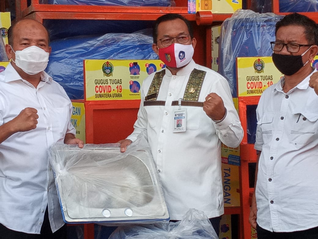 Bentuk bantuan yang diberikan melalui Pak Gubernur adalah berupa Masker non medis 500.000 lembar, Handsanituzer spray 85.000 botol berisi 60 ml perbotolnya, Stiker Protokol Kesehatan 50.000 lembar dan Face shield kacamata 500 buah serta Cuci tangan portable 100 set, semua ini merupakan komitmen Pemerintah Sumatera Utara kepada masyarakatnya, kata Riadil Lubis.